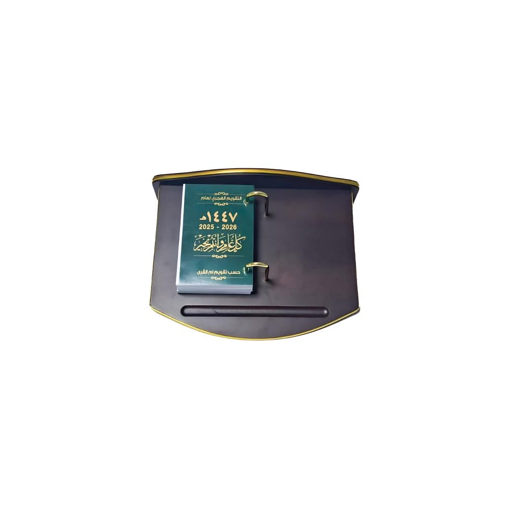 تقويم 1447 هجري مكتبي خشبي فاخر بإطار ذهبي